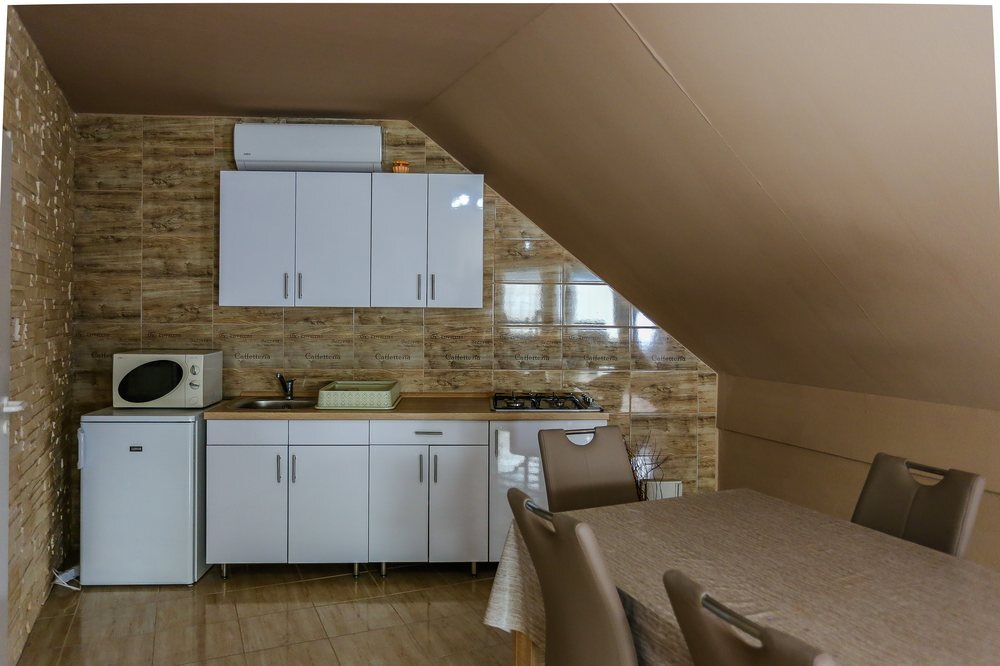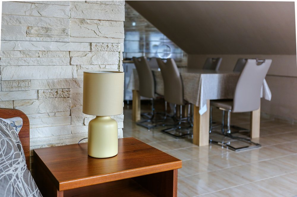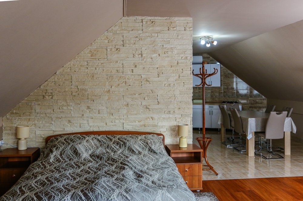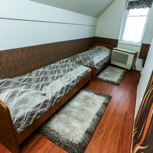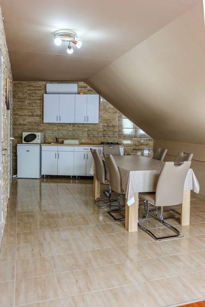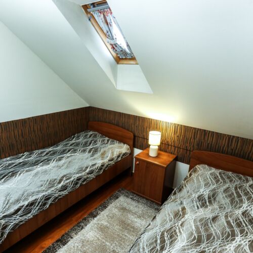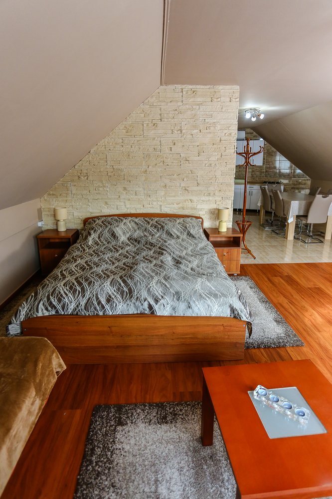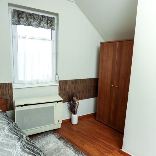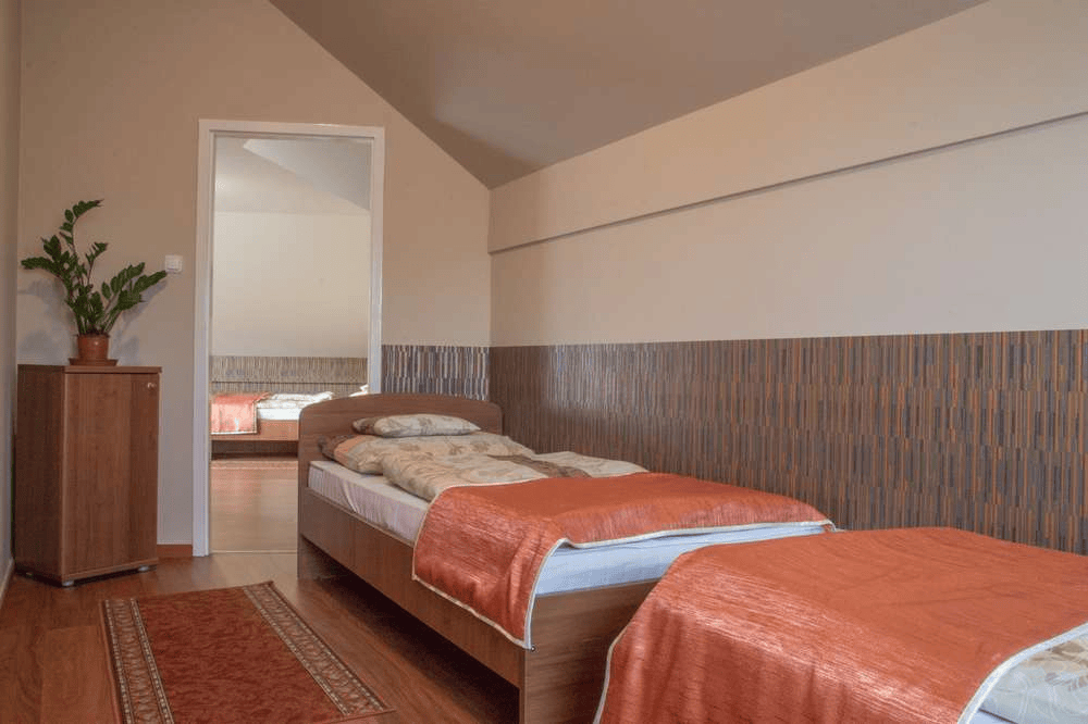 Az emeleti 8 fős apartman felszereltsége: 2 szoba, nappali, fürdő, étkező található 6 fő részére kényelmes szállást biztosít. Igény esetén 2 fő részére pótágyat biztosítunk.